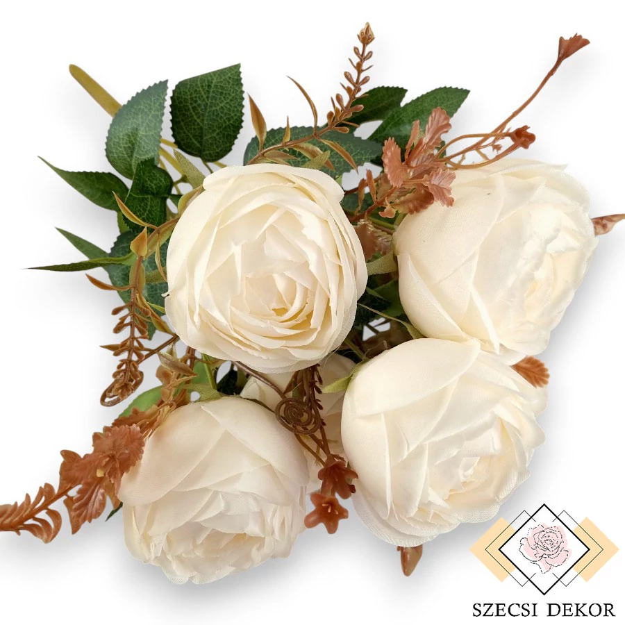 Mű ázsiai boglárka csokor 7 szál selyem 42 cm - krémfehér