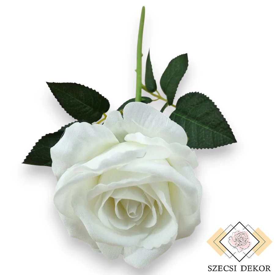 Élethű, prémium minőségű bársony anyagból készült rózsaszál. Feje nagyméretű, tömött, dombornyomott selyem leveleinek festése aprólékos.