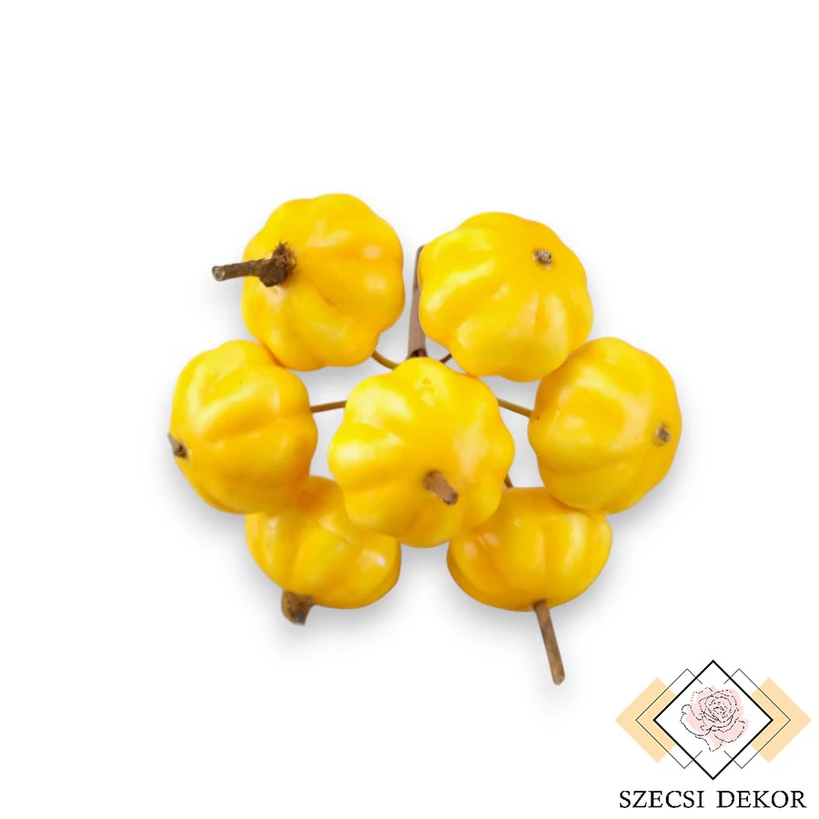 Apró méretű, fényes festésű csillagtök pikk köteg barna színű krepp papírral körbetekerve. A szárak vékonyak, végig merevítettek, könnyen formázhatóak. A termések fixen rögzítettek, lapított gömb alakúak, mély barázdákkal az oldalukon. Alapjuk hungarocell, festésük vastag, kellemes tapintású, tetejükön ragasztott, kemény szárral rendelkeznek.