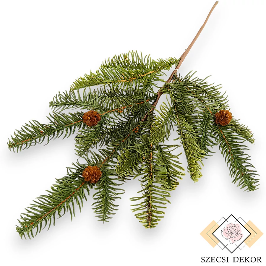 Élethű tapintású, gumi anyagú kínai mamutfenyő ág tobozokkal, fix tövekkel. Vékony, könnyen formázható szára fényes anyaggal körbetekert. A tövek közvetlenül a szárhoz vannak rögzítve. Három kisebb és 3 nagyobb tőből áll, utóbbiak tartalmazzák a tobozokat. Többszörösen elágaznak, a fő szálak végig merevítettek, a mellékek merevítetlenek. Tűlevelei félkörívesen helyezkednek el, a hátoldalon laposak. Oldalra nőnek, szélesebbek, végük kerek, erezetük a felső oldalon domborodó. Műanyag tobozai dróttal vannak rögzítve, pikkelyei vastagabbak, szélük hullámos, méretük változatos. Festésük foltokban sötétben, hátoldaluk karcolt, dundi tojás alakúak, kisméretűek.