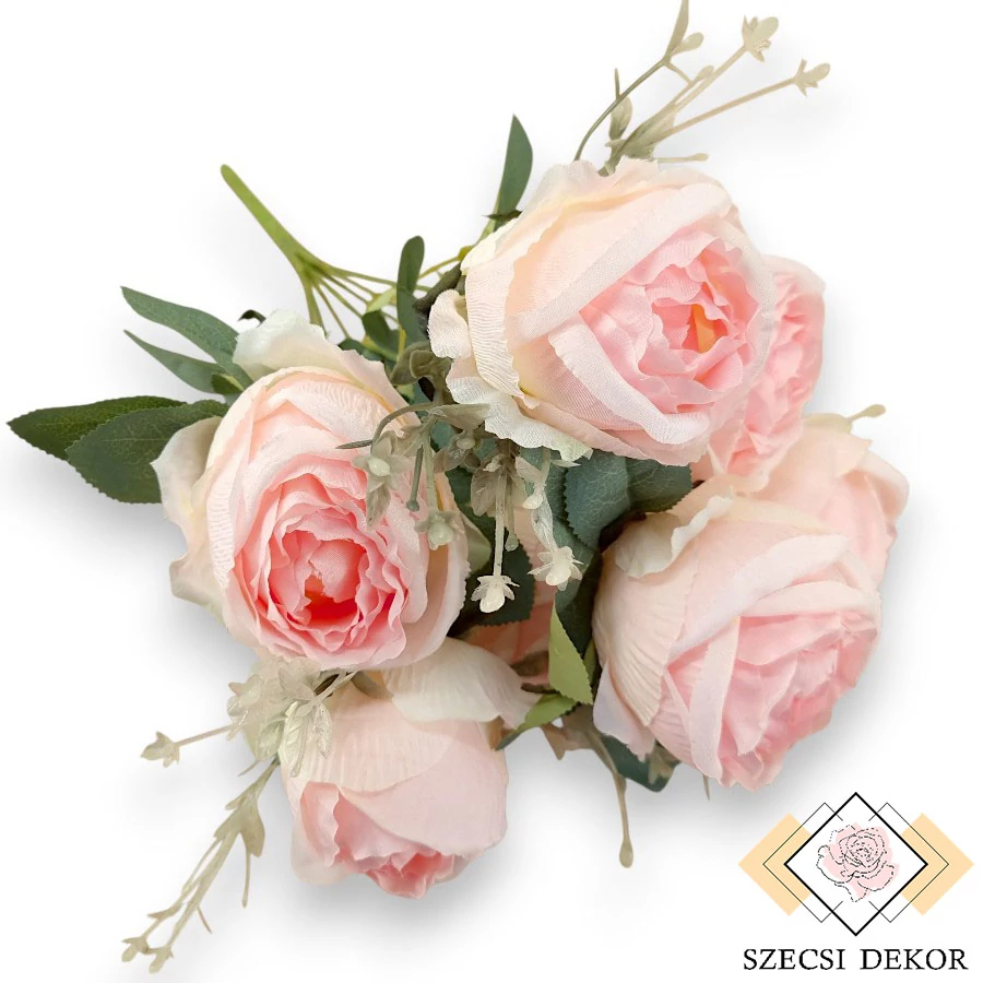Mű kínai rózsa bokor 7 szál selyem 39 cm