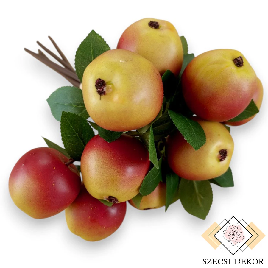 Élethű gyümölcsökkel rendelkező vadalma köteg selyem levelekkel, raffiával összekötve. Merevített szára barna színű, bőrszerű tapintású, sima felületű gumicsőbe burkolt. Legfelül kétfelé ágazik, melegbarna, műanyag ágai merevítetlenek. Minden szál 2 db termést és 3 db leveles tövet tartalmaz. Leszedhető leveles tövei 3 db, elliptikus, fűrészes szélű, hegyes végű levélből áll. Felülete közepesen enyhén fényes, vastag anyagból készültek. Erezetük halványan festett, a hátoldali merevítés átlátszik. A termések alapja hungarocell és kemény, vastag festékréteggel rendelkeznek, kissé fényesek. Festésük aprólékos, változatos, felületük sima, egyenletes. A termések kerekdedek, tipikus formájúak. Az aljukon domborodó részekkel, középen festett darálékkal díszítve.