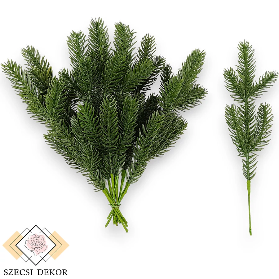 Mű zöld cukorsüvegfenyő köteg 12 szál 24 cm