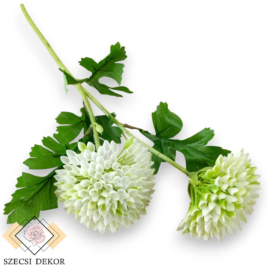 Mű zöld gömb dália szál 52 cm - fehér