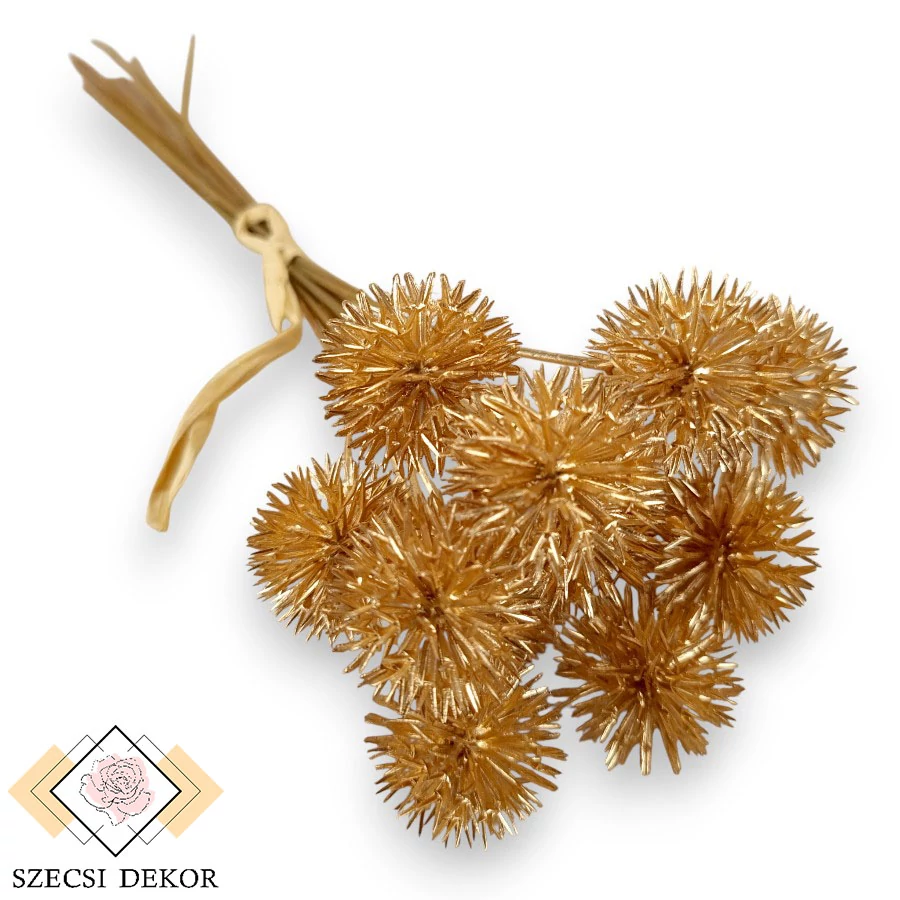 Mű zöld metál szamárkenyér köteg kicsi 12 szál 33 cm - arany